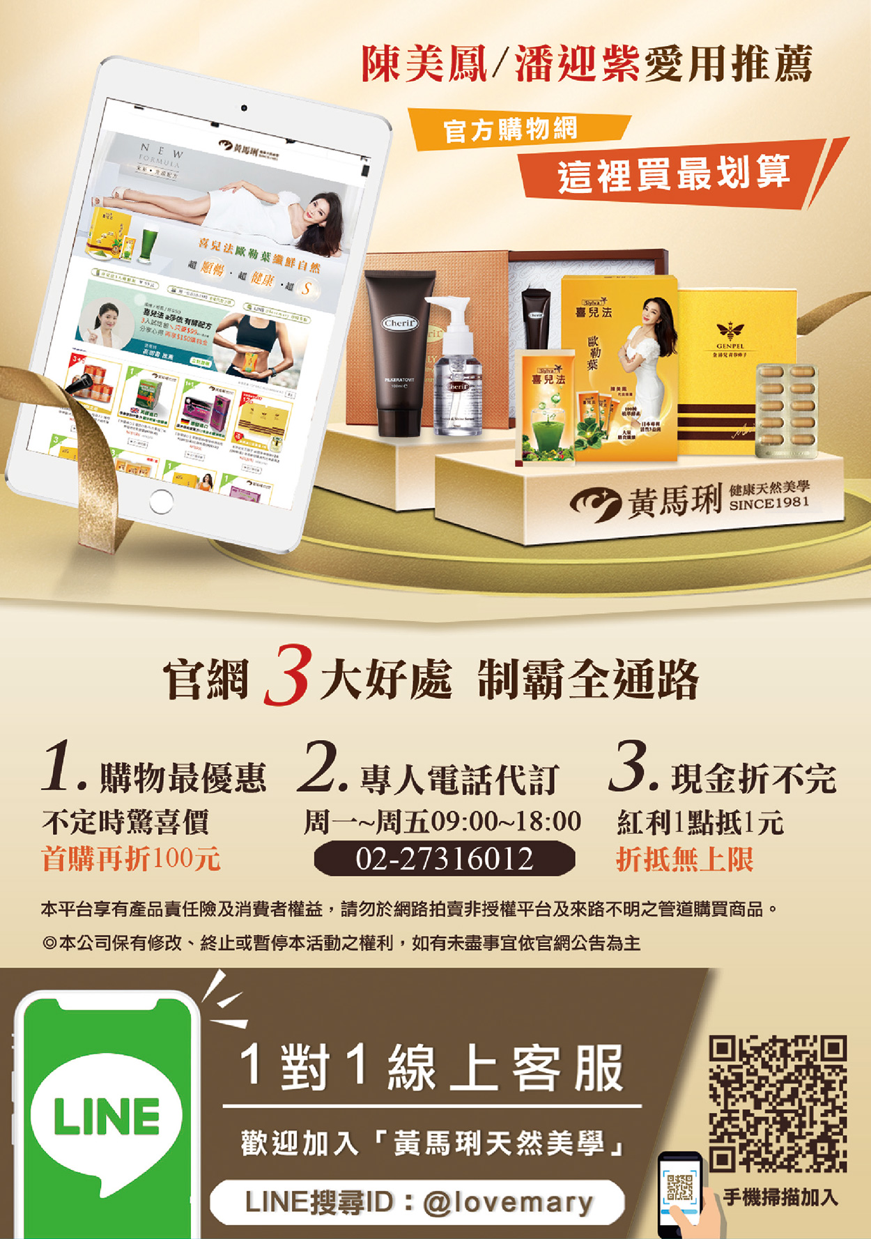 In view of this, Huang began to devote herself to the field of beauty and health, slimming courses and scalp conditioning by staring business with a hair salon, the Merry Spa parlor, Siylva, Genpel, and the pioneering scalp conditioning program in Taiwan in recent years, by developing products targeting from head to toe for the unhealthy lifestyle of modern people, and by refining hair styling techniques and introducing and developing health supplements and beauty products.