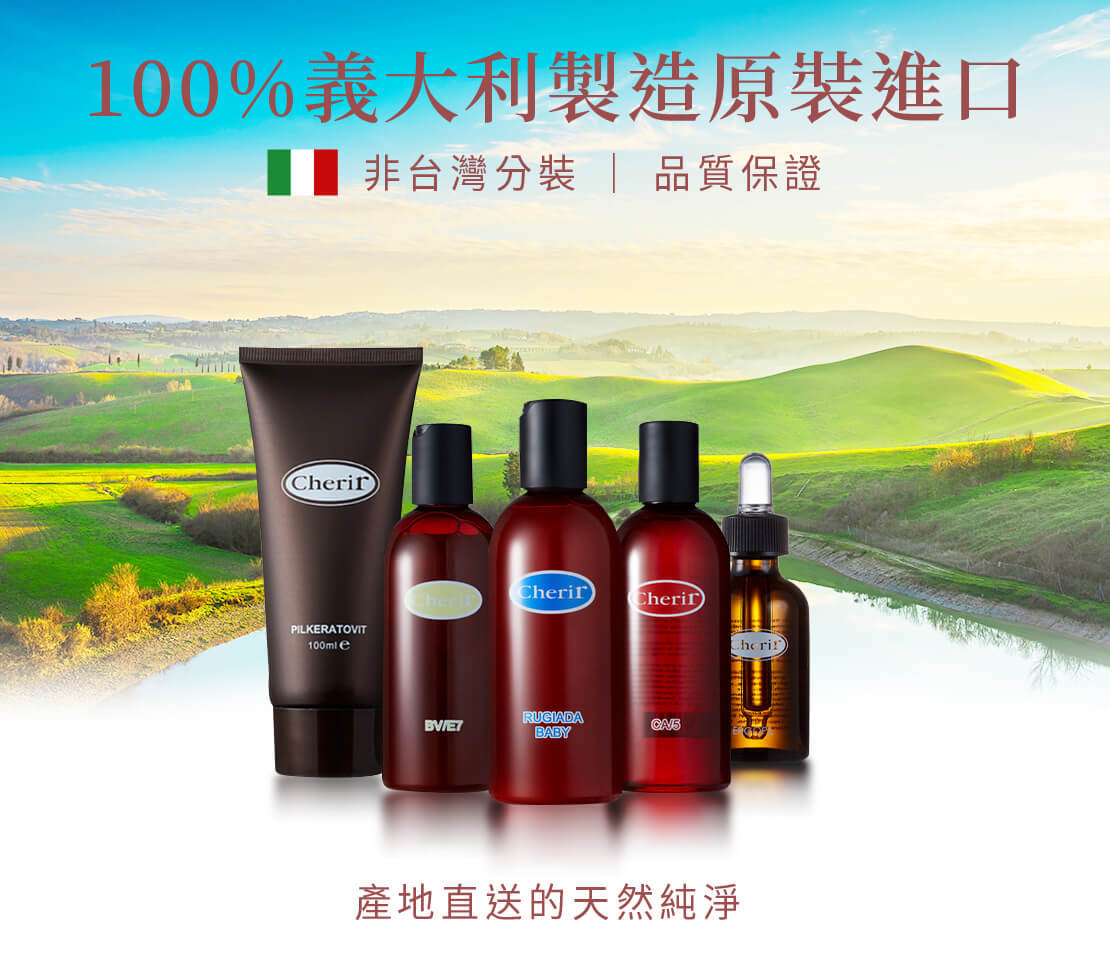 「Cherir雪瑞爾」萃取自當地天然無毒;在高山上珍貴植物的天然植物菁萃與來自獨有的義大利黃金能量泉水Acqua Dorato,讓這兩大高階精華元素完美結合,建立完整「雪瑞爾養髮專業管理」應用超強智慧養護系統,讓頭皮更新滋養,毛髮強韌蓬鬆自然。